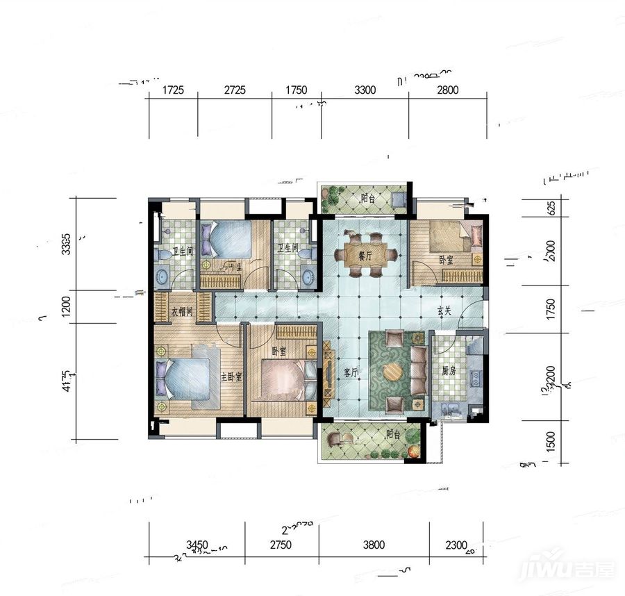 • 户型名称:04户型121㎡ 4室2厅2卫
