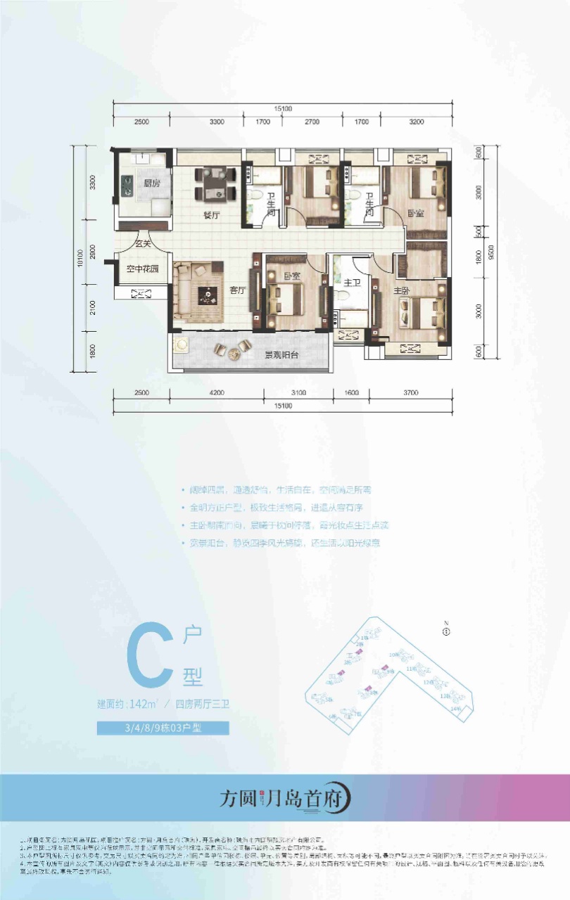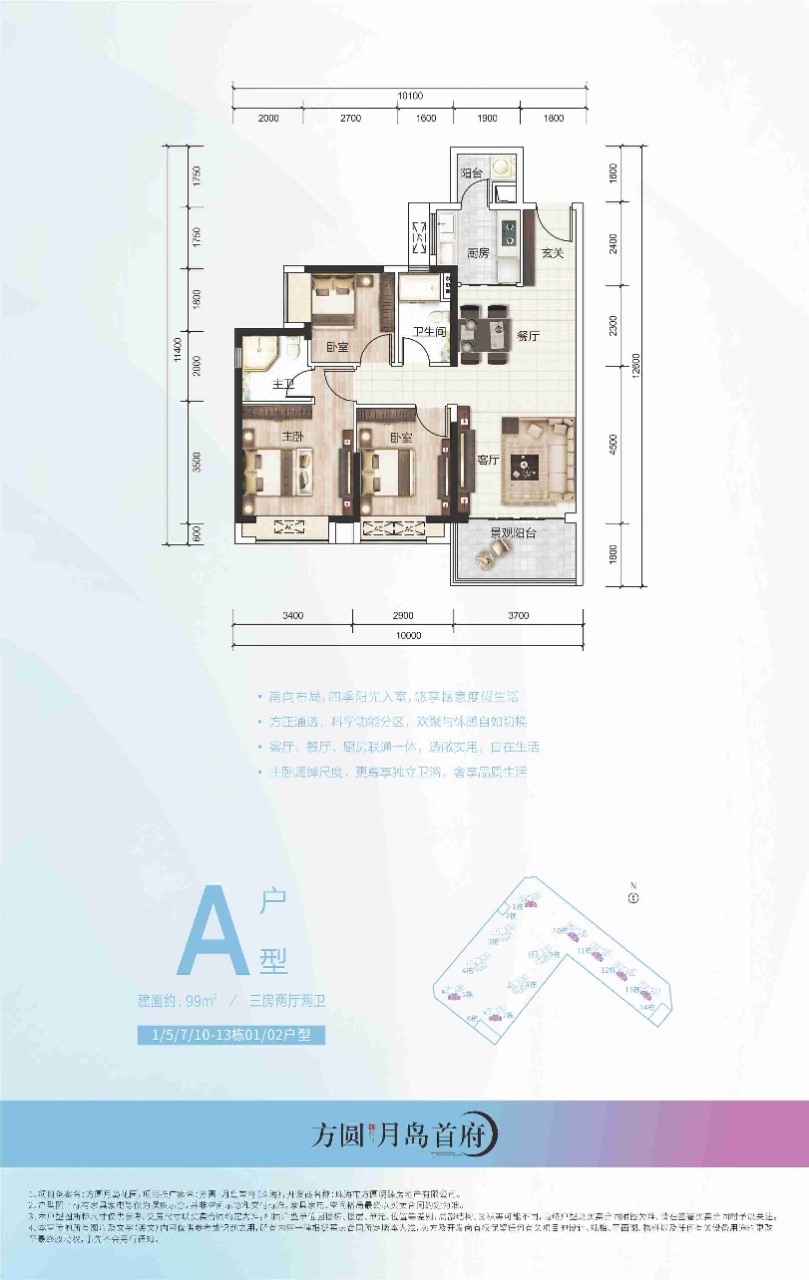 方圆·月岛首府(珠海)项目是由珠海市方圆明臻房地产有限公司开发,隶属于方圆集团。方圆集团成立于1997年,一直坚持以房地产开发经营为核心主营业务,规模不断扩大,已经将业务范围延伸到了金融、教育、医养、海外投资等众多领域,致力打造全生命周期的服务体系。截至2019年,已连续13年跻身“中国房地产百强企业”,并荣获“中国民营企业500强”和“广东省百强民营企业”的称号。经过22年的发展,在粤港澳大湾区和其他省份已经筑建了八十余个精品项目,作为被业界称为“文化方圆”的开发商,一直致力于探索东方人居生活,为居住者筑建梦想家园。 项目位于珠海平沙新城地段,总占地5.1万㎡,总建筑面积18.3万㎡,整个小区总共由11栋高层住宅组成,项目户型面积涵盖99-142㎡的滨海精装三至四房户型,分两期统一开发。整个建筑的设计风格秉承“现代滨海度假风格”,以简洁现代的线条手法诠释人居合一的理念。整个小区的物业是由方圆自己的物业进行统一管理,物业管理费2.98元/㎡/月,拥有国家物业一级管理资质。保安24小时巡逻值岗,全天候智能化监控,充分考量珠海人居习惯,为方圆月岛首府住户提供尽善尽美的个性化定制服务。
