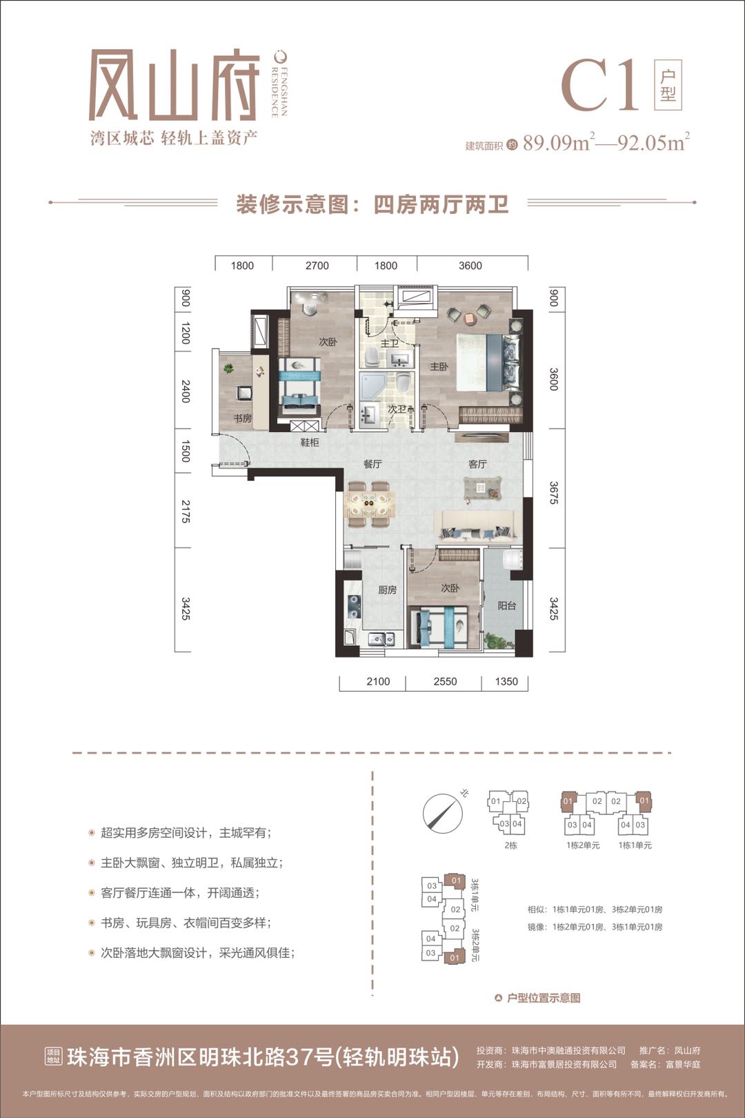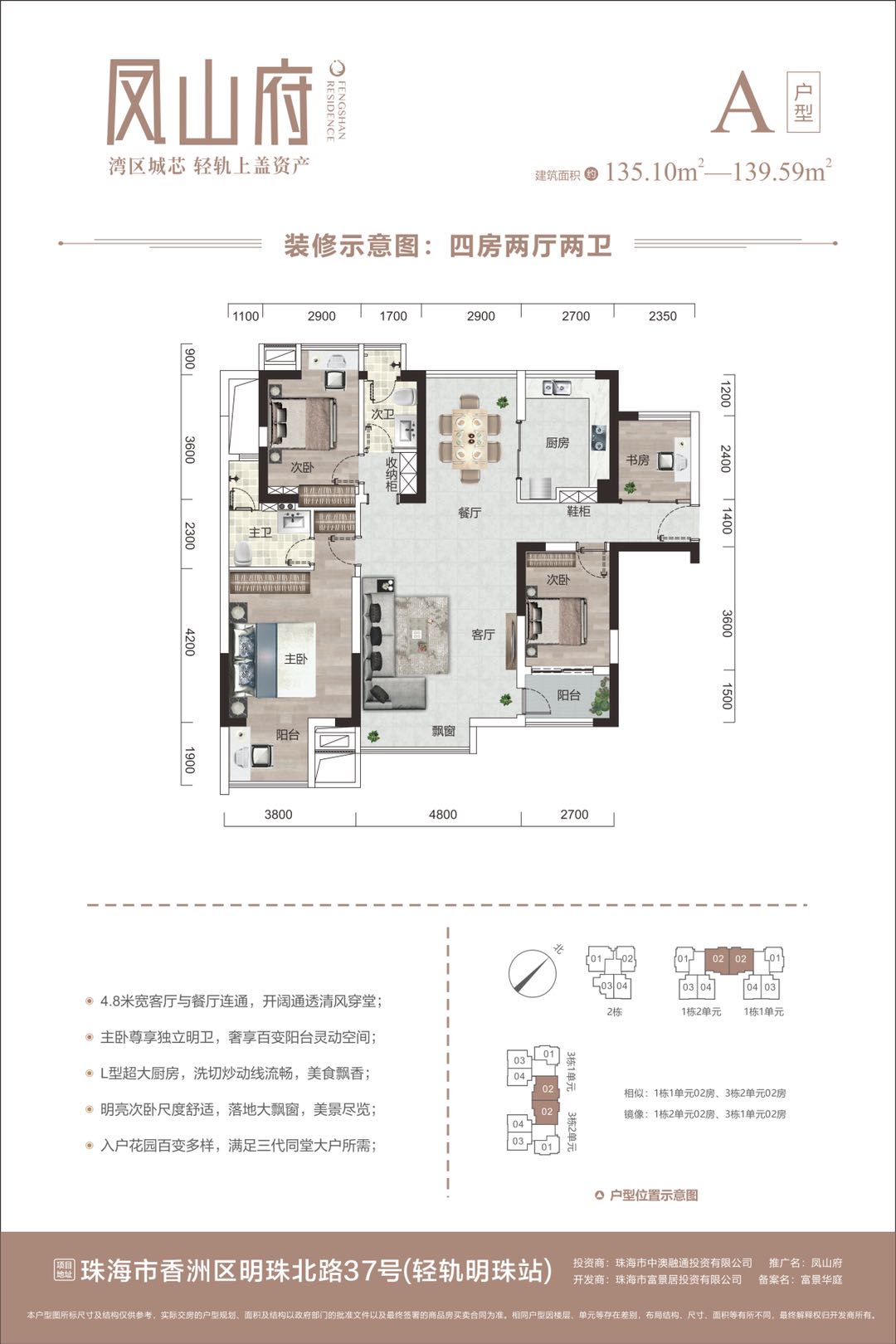凤山府位于珠海新香洲明珠轻轨站上盖,属凤山街道,享新香洲全系配套(香山湖公园、儿童公园、方志馆、珠海中心书城、全民健身中心、华侨城、科创小镇、山姆会员店、奥园广场等)。项目建有3栋高层住宅(5个单元),两梯四户,共578户,81-139㎡轻奢雅宅,全屋精装现楼,即买即办证,置业更安心。全龄教育配套,九中名校、云峰小学、云峰幼儿园、喜乐幼儿园等高品质校区。自带5万㎡“凤鸣佑里”购物中心与 “绿景佐邻”商业连片,形成新香洲地标性CBD街区购物中心,计划引进巨幕影院、精品超市、网红餐饮、时尚潮牌、亲子游乐、生活配套等业态,现正火热招商中,目前已有万达影城、麦当劳、华为、小米、苹果、麻辣英雄、小荣大胜、生活无忧等知名品牌意向进驻。商业天面打造秘境空中花园,集休闲绿化、儿童娱乐、凉亭栈道、景观水系等多功能于一体的都市静谧天地。小区采用24小时专属大堂楼栋管家服务,业主电梯刷卡到户,AI科技人脸识别门禁,业主居住体验更尊贵,更安全。