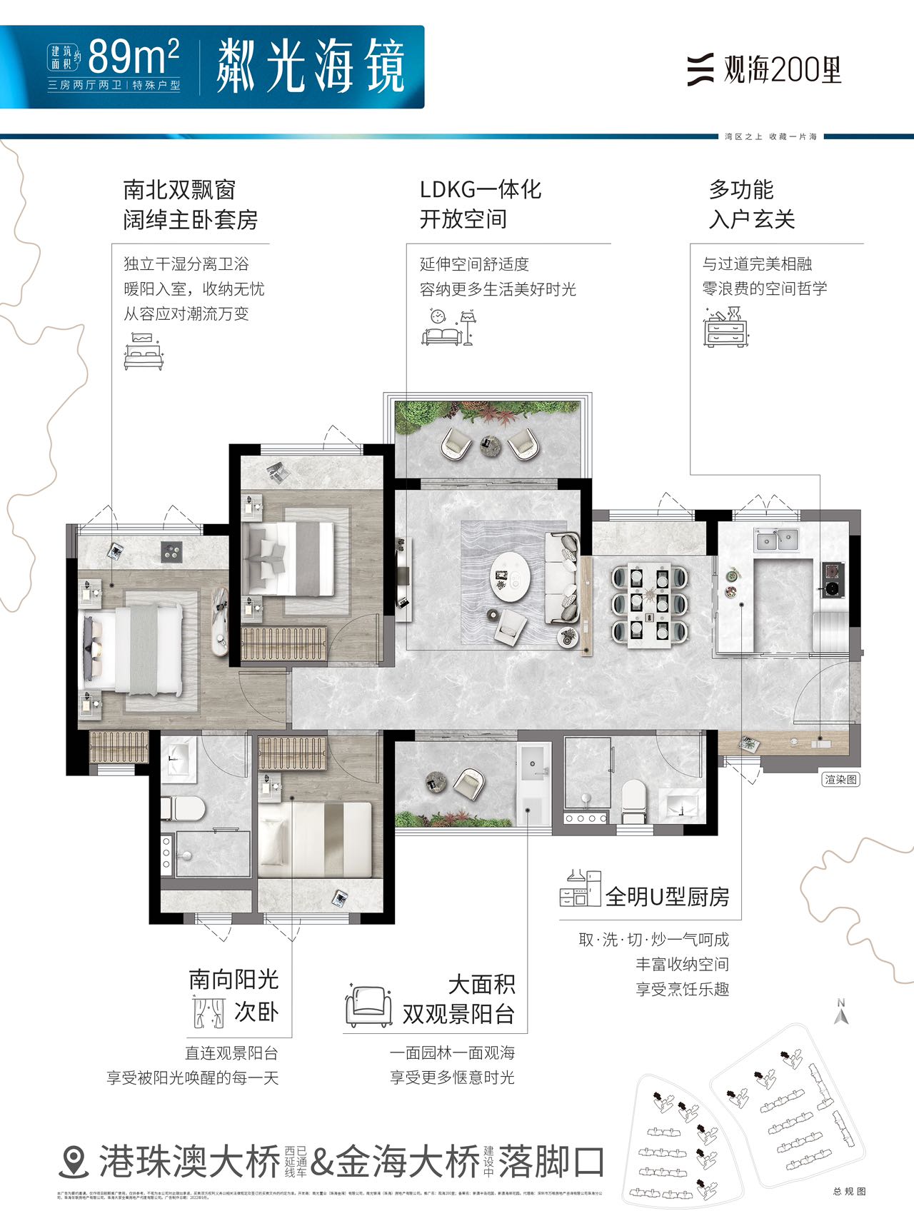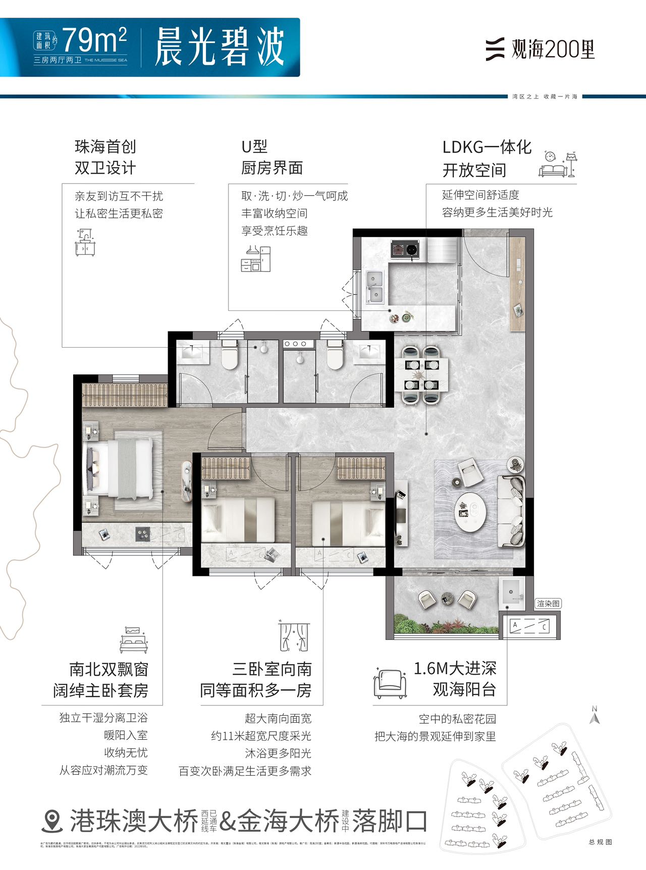 洪鹤大桥、金海大桥(在建中)、金海二桥(规划中)三桥连横琴,10分钟到横琴,24h通关澳门、香港;一站机场,10分钟全球畅达;紧邻未来轨道交通枢纽,1KM城轨站直通湾区11座核心城市。