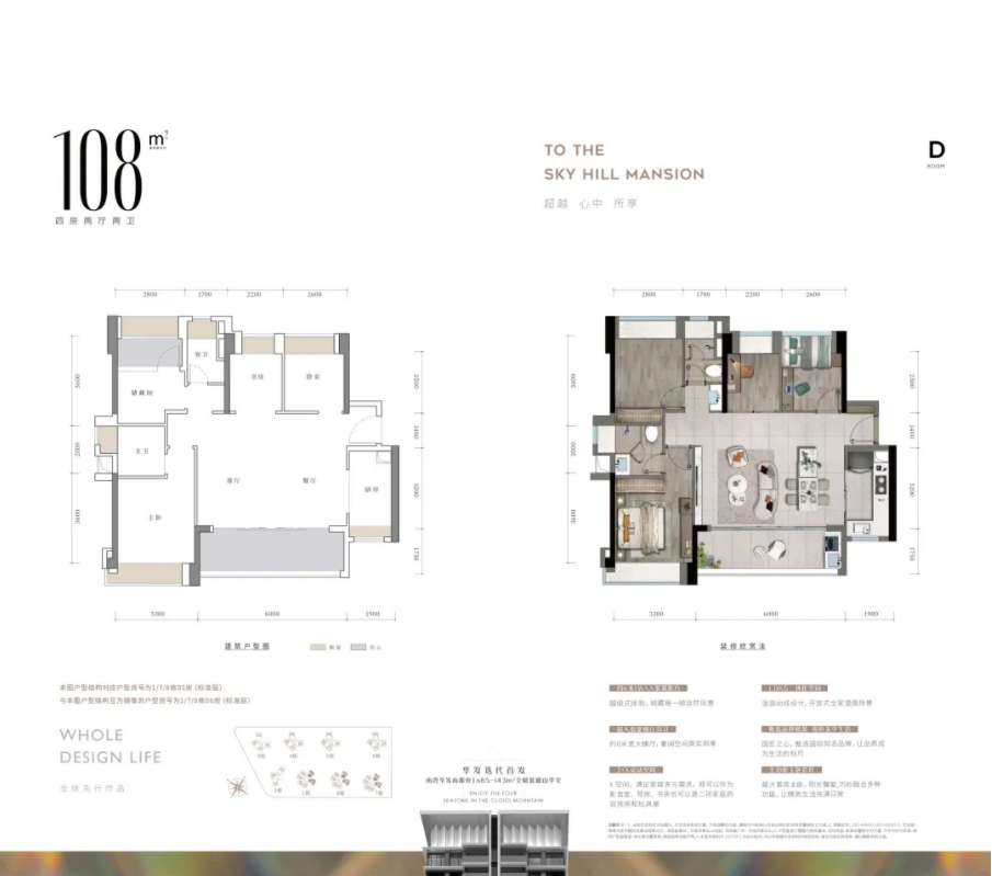 约 6 米开间的大横厅,可做 4 房,也可以将两个卧 室打通做成大 3 房。不仅实现了实用 3+1 房 2 厅 2 卫的功能布局,还做到了同等 面积中少见的 6 米开间的大横厅,还充分考虑了年幼二孩家庭的需求,在样板房 中提出双孩房的概念,我们可以将两个卧室打通,做成满足孩子的温情成长空间。 而孩子