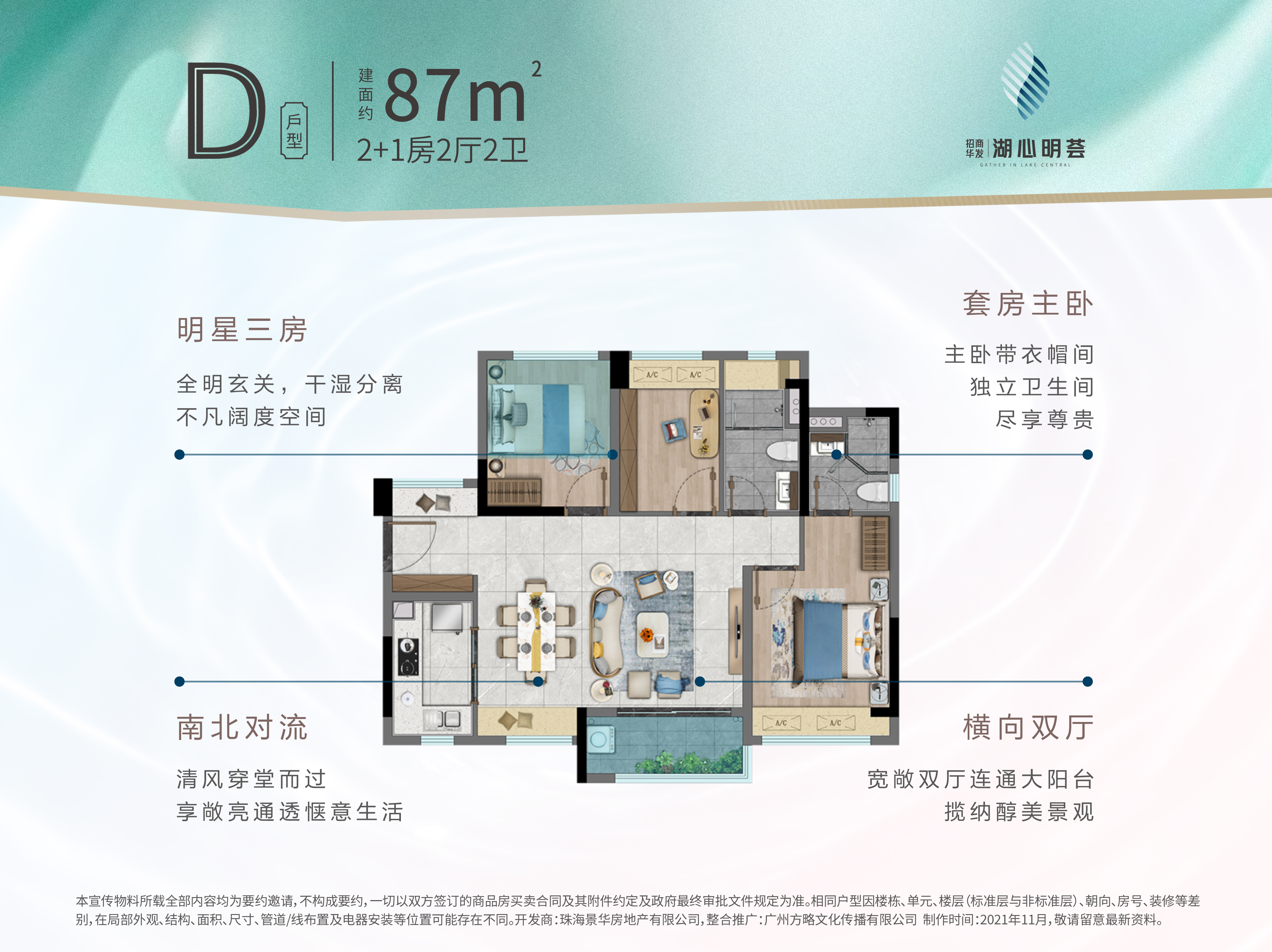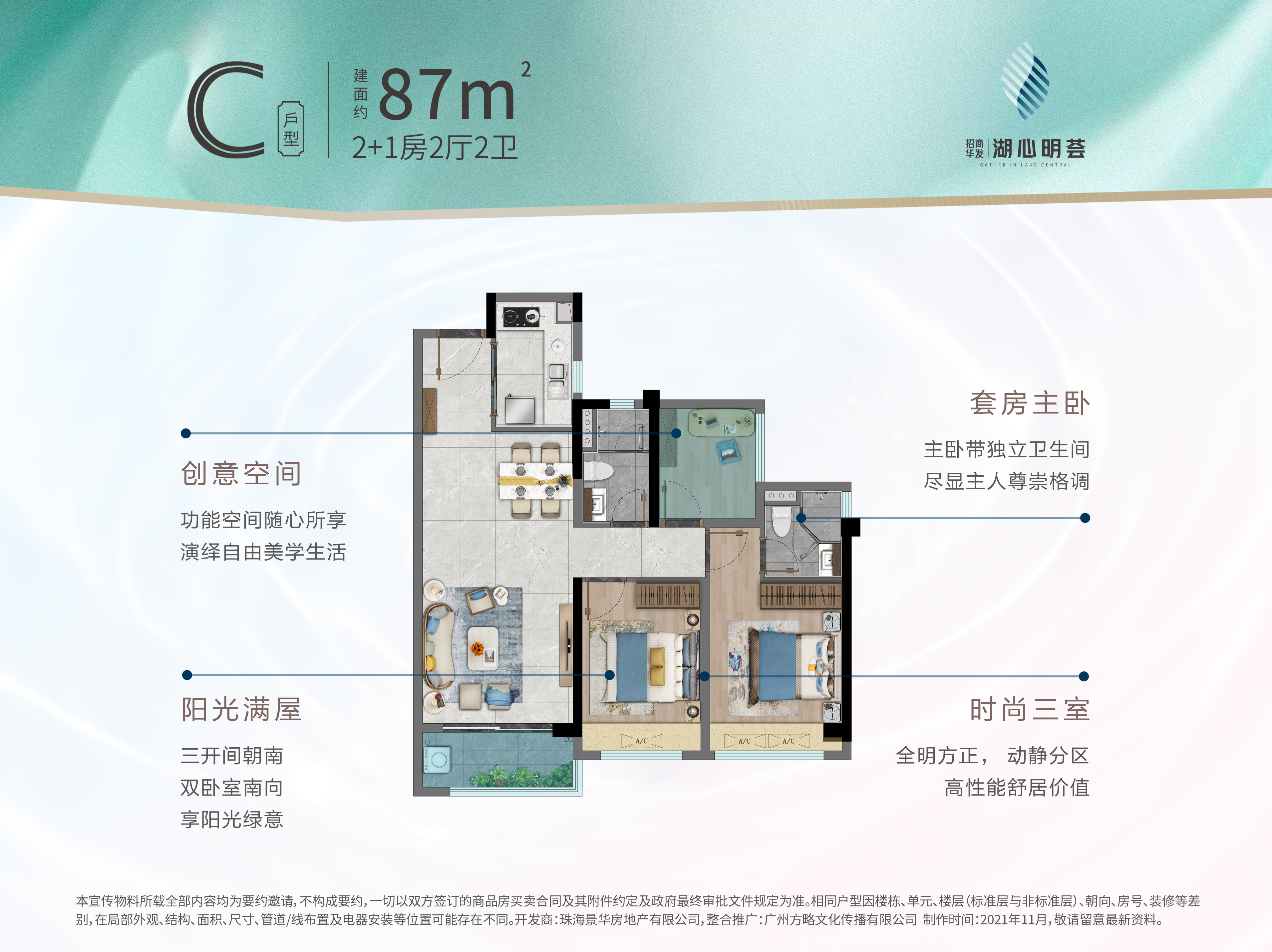 招商蛇口华发股份 实力双强,联手匠作 招商蛇口,百年招商局旗下旗舰物业,历经42年发展,足迹遍布全国111个城市,打造逾620个精品项目。 华发股份,珠海龙头企业华发集团旗下房地产开发板块平台公司,2020年位居“财富中国500强”第296位,“2021中国房地产百强企业”第32位。 招商华发湖心明荟,由招商携手华发,于湖心新城筑起一方理想人居。 珠海向西 飞速崛起的湖心新城 项目所在的湖心新城占据珠海西部腹地,已成为城市重点开发区域。随着板块利好规划逐步落地,众多品牌开发商涌入,湖心新城格局焕新,以强劲势头领衔城市发展。 一桥主城 立体交通畅行湾区 招商华发湖心明荟坐拥湖心路、双湖路双主轴,雄踞珠海大桥、香海大桥(预计2022年通车)桥头堡位置,跨桥速达主城。周边珠三角环线高速、广佛江珠高速等快线环绕,更有广州城际、金湾机场等立体路网,近享两小时湾区生活圈。 横跨珠海东西部——香海大桥 香海大桥(预计2022年通车),“连通南北,横跨东西”,香海大桥连通西部城区与香洲城区,香海大桥通车将加速东西城一体化发展,促使城市交通升级。 四大商业体 总计超30万方繁华商业 家和城广场、爱琴海购物中心(在建)、金茂商业(在建)、豫园商业(在建)四大商业体,总计超过30万方,购物休闲娱乐一站式尽享。 全龄段学府云集 海量优质教育配套 湖心新城规划27所全龄段学府,包括15所幼儿园,8所小学,4所中学,项目周边5km内已有金湾一小、白藤湖小学、城南中小学、珠海实验中学、红旗中学等;海量优质教育配套,为孩子造一个菁英未来。(来源:珠海西部中心城区A片区控制性详细规划(2017年修编))